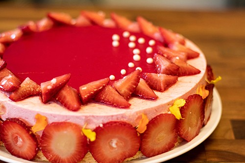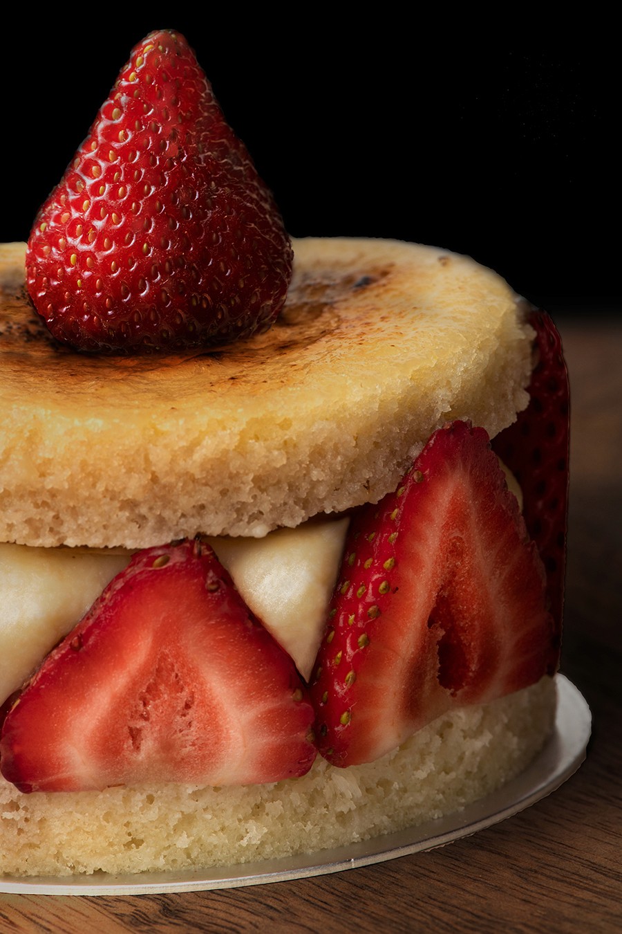 A light and elegant flavor featuring layers of soft genoise sponge and a delicate strawberry mousse. Refreshing yet refined. This cake leaves a clean, lingering fruit finish on the palate.
