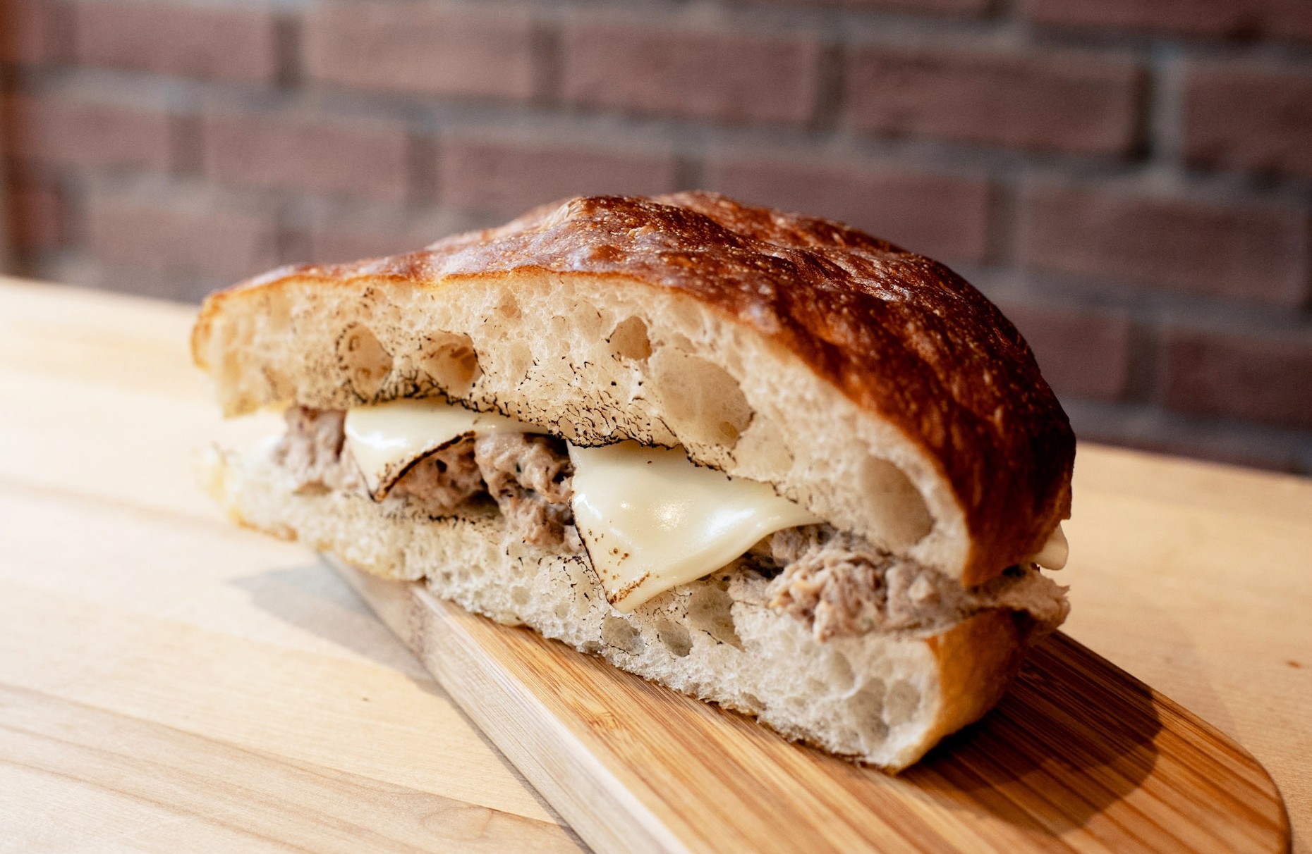 Creamy Tuna with Red Onions, Cilantro, and Swiss Cheese.
