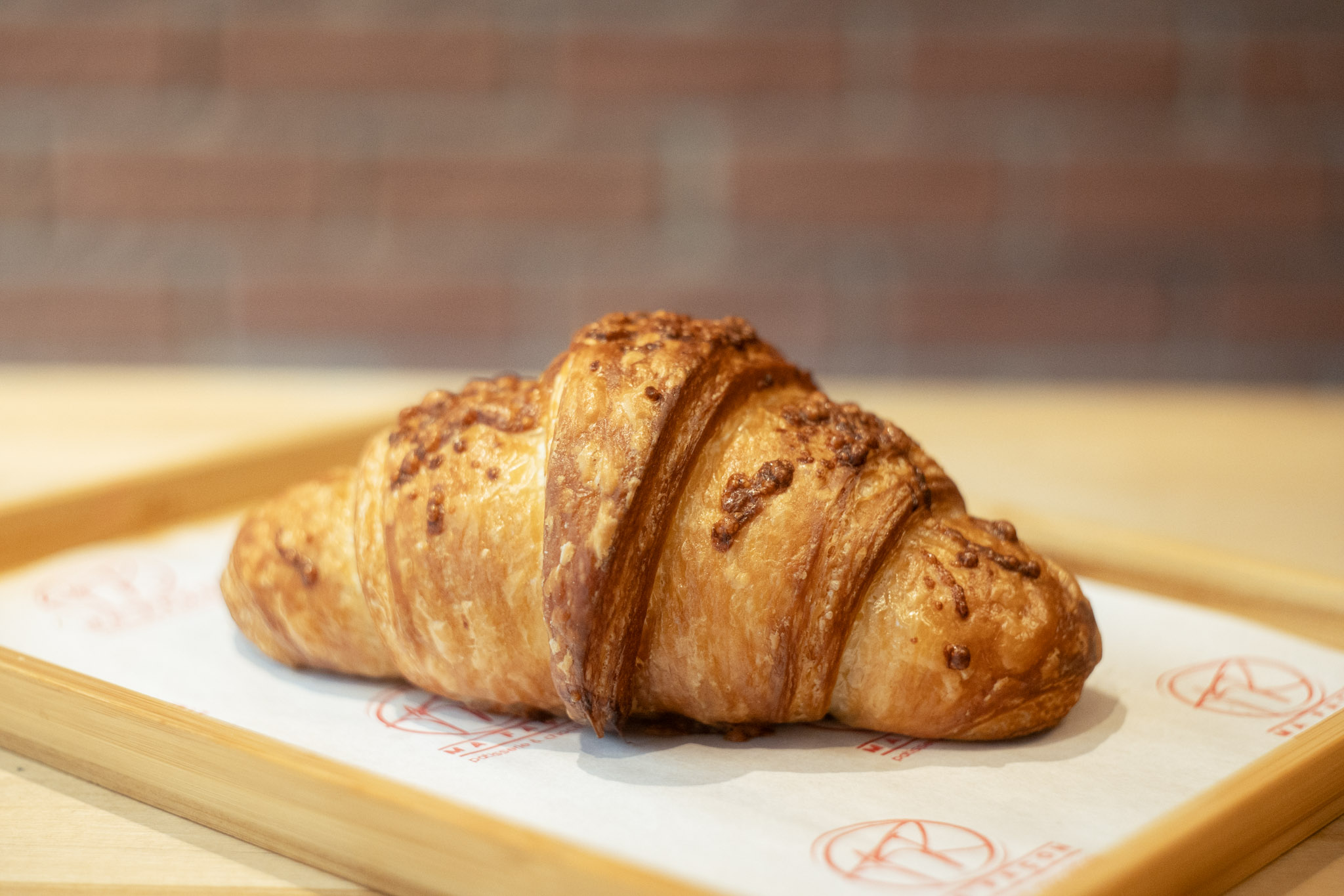 Our House-made Croissant is made with European Butter and Multiple Layers of Lamination, Baked To Perfection with Emmentaler Cheese
